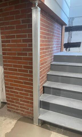 When our Structural Crew arrived, they removed the old cracked wooden support beam, and replaced it with a Steel SmartJack Pier, and moved it to a more secure position, at the bottom of the stairs. SmartJacks are "jacked up", until the floor is level again, and remain permanently in place to support the weight of the home above. They are also adjustable in the future if need be. Next, our crew addressed the crack in the wall. Into the crack, they injected our Crack Epoxy injection material, to bond the edges of the crack back together, holding it firmly in place. Over top of the Epoxy injection, they placed 2 thick strands of Carbon Fiber Stitching along the length of the crack. Carbon Fiber Stitching is 10 times stronger than steel, is anchored in place with heavy duty pins, and will ensure that the crack holds together, allowing no further cracking. With the combination of the Epoxy injection, and the Carbon Fiber Stitching, this crack will not worsen, and the wall will remain sturdy. After completing the structural repairs, we began waterproofing the basement. To do this, we installed our WaterGuard Perimeter Drainage System along the bottom of the basement walls, by cutting out a very narrow portion of the concrete, creating a trench to place the WaterGuard collection system. The WaterGuard will gather all water intrusion coming in through the walls, and will route it down to a TripleSafe Sump Pump, which pumps it safely away from the home via a discharge line. Our Electrical Division came out and installed a brand new dedicated electrical outlet to operate the pump. Directly onto the basement walls, we attached our BrightWall Paneling, which is made of plastic that will never rot or discolor. The Paneling will ensure that all water that leaks in through the walls, is directed down into the WaterGuard, and will never enter the basement itself. This homeowner is relieved that the foundation and basement of his home are now protected by a WaterGuard Perimeter Drainage System, and that the structural damage done by past water intrusion has been permanently repaired by the experts here at John's!