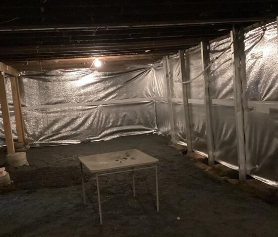 This homes crawl space hadn't been looked at in many years. After hearing squeaks coming from the crawl space in the evening the owners decided to glance under the home. This is how they discovered that their crawl space was a mess. The fiberglass was falling down, and caked on mud and standing water were seen across the old 6 Mil vapor barrier. To take control over this space and have it be healthy, they contacted John's Waterproofing. We sent out a design specialist who did a full inspection and then discussed a solution with encapsulation. This system brings the crawl space into the homes envelope, making it a controlled and healthy environment.