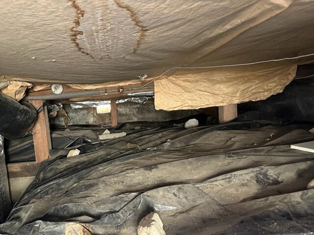 This owner had a contractor doing some work in the crawl space. When they emerged, they let the owners know that there were signs of water damage present, specifically along the material with the fiberglass. They were referred over to John's Waterproofing to learn about options. To did a full inspection and than sat down to discuss what was happening, and we than worked on finding a repair plan that would fit their budget. We begin we had to clear the space out, removing the old vapor barrier, debris, and the fiberglass from the subfloor. Once cleared out, we spot treated for mold along the subfloor where the water had been held stagnant against the wood. We than dug a trench along the interior perimeter, within this we installed a perforated pipe within a silt sock. Groundwater will be able to accumulate within this and be direct to the lowest point. From there the water enters a TripleSafe sump pump to be pumped away from the homes foundation through a discharge line, and out of a LawnScape outlet. A new 6 Mil vapor barrier was laid out as the final step, we overlap the edges and anchor it into place to help protect the crawl space.