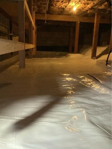 This homeowner was using their wet and musty crawlspace for storage. They called John's Waterproofing for help. We went out and were able to completely transform the space, by installing a CleanSpace encapsulation. Our CleanSpace is a 20mil plastic vapor barrier. This vapor barrier has a carbon fiber woven throughout. This makes for a sturdy and durable storage spot. Now this homeowner can rest assured that their belongings are safe from water and mold.